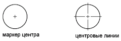Нанесение неассоциативных маркеров центра или центровых линий для кругов и дуг.