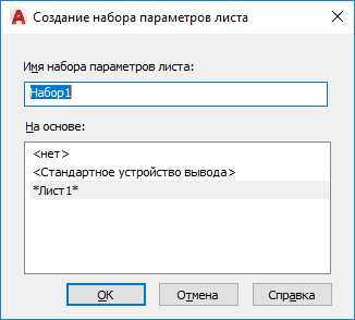 Определяет набор, параметры которого по умолчанию применяются к новому набору параметров листа. После нажатия кнопки "ОК" открывается диалоговое окно "Параметры страницы", в котором перечислены параметры выбранной страницы, которые при необходимости можно изменить.