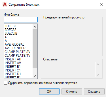 Сохранить определение блока в файле чертежа
