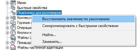 1. На вкладке "Адаптация" на панели "Адаптации <имя файла>" щелкните правой кнопкой мыши узел "Подсказки ролловеров".
