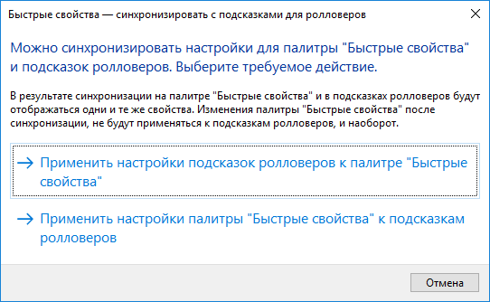 3. Выберите "Применить параметры быстрых свойств к подсказкам ролловеров".