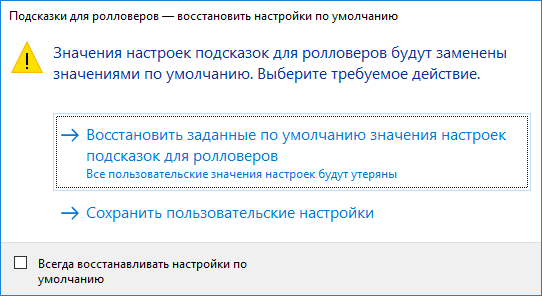 3. Выберите "Восстановить заданные по умолчанию значения подсказок для ролловеров".