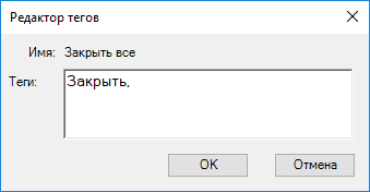 В поле "Теги" диалогового окна "Редактор тегов" введите дескриптор команды.