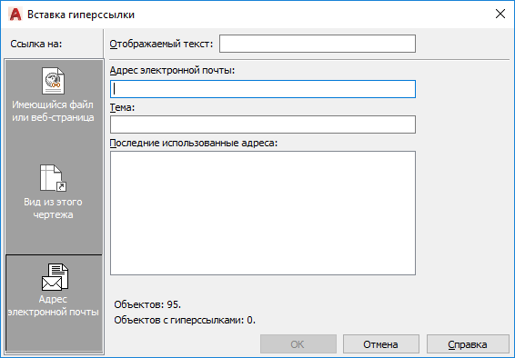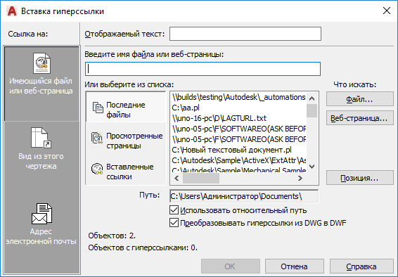 Вывод списка последних назначенных в чертеже гиперссылок.