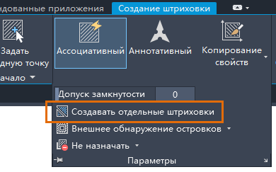 2. На ленте «Редактор штриховки» разверните панель «Параметры» и выберите «Отдельные штриховки».