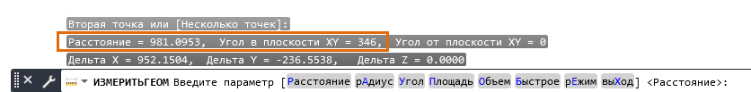 Измерения отображаются в командном окне. При необходимости нажмите клавишу F2, чтобы развернуть командное окно.
