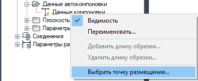 3. В обозревателе элементов разверните узел "Данные автокомпоновки", щелкните правой кнопкой мыши на записи "Данные компоновки" и выберите команду "Выбрать точку размещения".