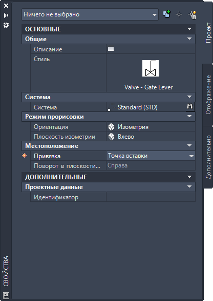 Прим.: Если выбранный стиль не имеет никаких определенных изометрических видов, ориентация будет выбрана только для чтения и установлена в режим "Орто". В этом случае выбирается другой стиль.