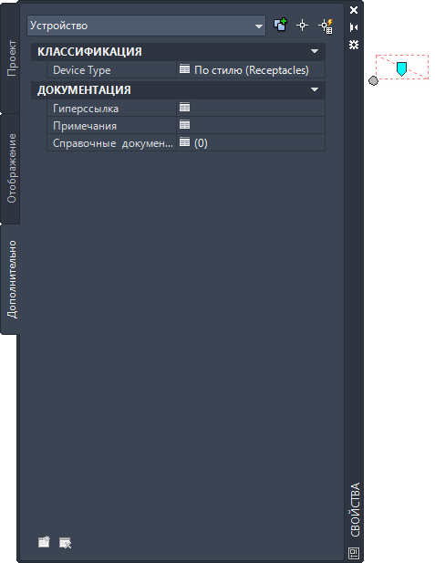 Поскольку устройство на чертеже является вхождением какого-либо стиля устройства, оно имеет свойство для каждого определения классификации, имеющегося в этом стиле устройства. В палитре свойств на вкладке "Расширенные данные" можно посмотреть или переопределить классификацию для одного или нескольких имеющихся на чертеже устройств.