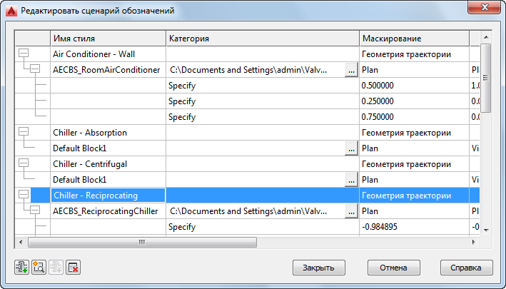 Свойство "Исходный блок", предусмотренное в сценарии, не отображается на этой вкладке. При создании вида для стиля с помощью Диспетчера стилей путь к файлу чертежа, содержащего исходный блок AutoCAD, не указывается, так как выбрать блок можно только на текущем чертеже.
