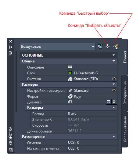 выбрать объекты в области, например в области "Воздуховод" — сегменты воздуховода, фитинги или гибкий воздуховод