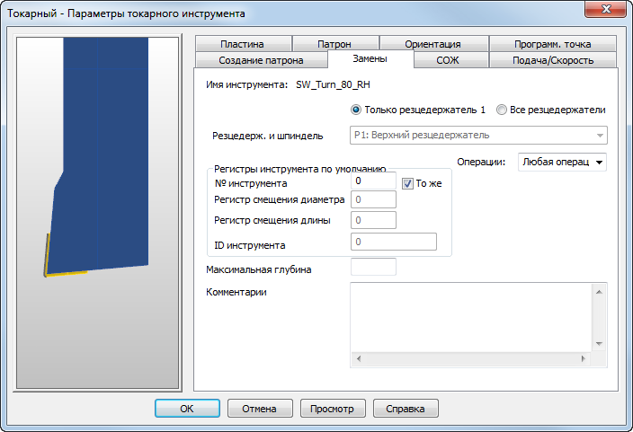 Комментарии — При желании введите комментарии, относящиеся к этому инструменту. Постпроцессор может быть сконфигурирован так, чтобы выводить эти комментарии.