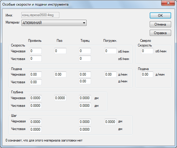 Значения для материала обновляются в таблице на вкладке Подача/Скорость.