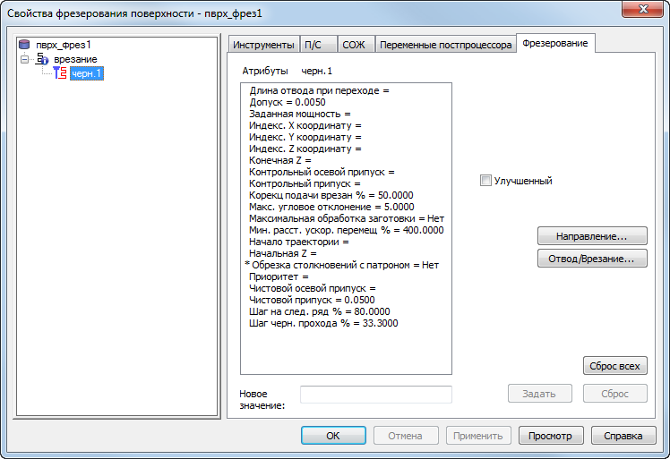 Новое значение — Чтобы изменить значение атрибута в этом списке, сначала выберите его, а затем введите новое значение. Нажмите на кнопку Задать, чтобы сохранить новое значение.