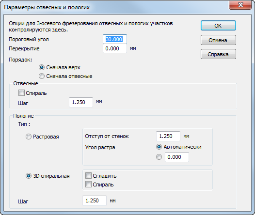Порядок — Определяет порядок, в котором обрабатываются отвесные и пологие участки.