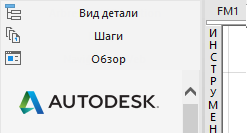 Инструментарий расположен в левой части графического окна FeatureCAM и содержит три панели.