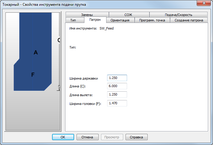 Вкладка Патрон для Подачи прутка и Вытягивания прутка содержат следующие атрибуты: