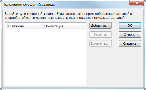 Диалог Положения смещений зажима перечисляет ID зажимов, которые вы создали.