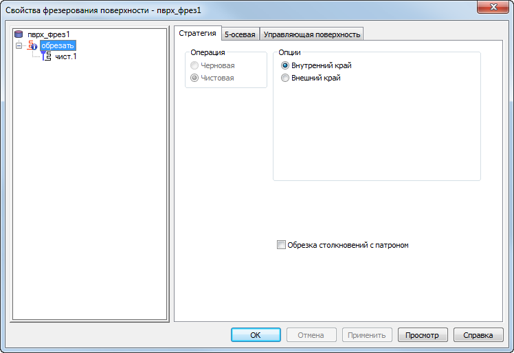 Обрезка столкновений с патроном — Обрезает траекторию там, где патрон или хвостовик сталкивается с поверхностью детали или контрольной поверхностью. Когда выбрано, атрибуты Зазор патрона и Зазор хвостовика отображаются на вкладке Фрезерование для операции.
