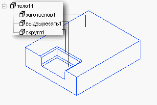 Например, это тело создано из заготовки, затем был удален карман и применено скругление: