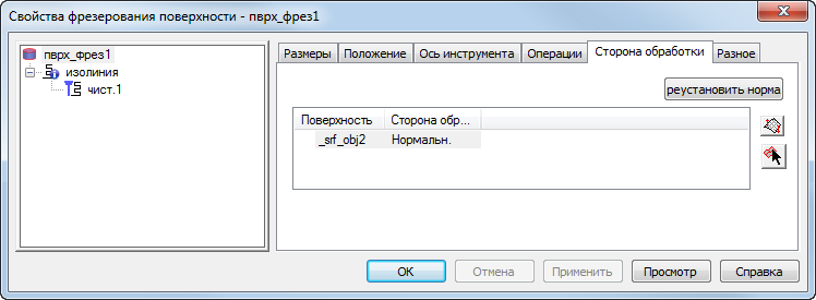 — выберите поверхность в таблице и нажмите эту кнопку, чтобы развернуть сторону обработки. Сторона обработки в таблице меняется с Нормальной на Развернутую. Нажмите снова, чтобы вернуться к Нормальной.