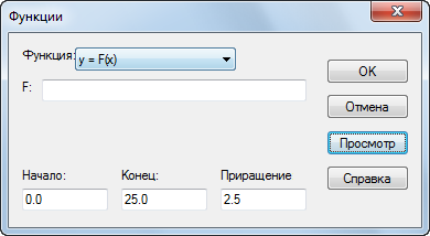 В списке Функция выберите тип функции, которую вы хотите построить. Используйте y = F(x), чтобы установить Y в качестве функции от X, и x = F(y), чтобы X был функцией от Y.