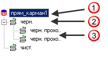 Дерево 2.5D Фрезерной обработки содержит различные операции и проходы для элемента: