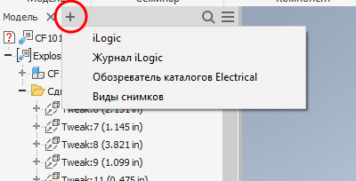 Независимые и связанные виды снимков отображаются на панели "Виды снимков". Если панель «Виды снимков» не отображается, ее можно вызвать, щелкнув значок «+» в строке заголовка обозревателя модели.