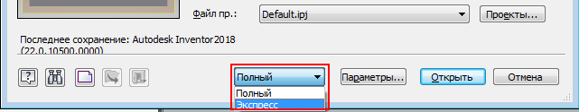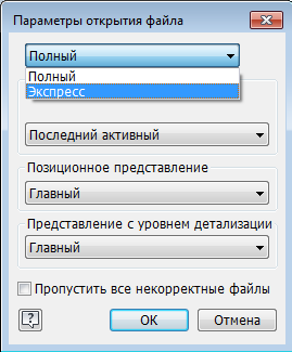 Как правило, сборка открывается полностью (Полная загрузка), то есть, в память загружаются все данные компонентов. Для больших сборок в Inventor реализован режим «Экспресс» (Экспресс-загрузка ). В этом режиме модель открывается намного быстрее, при этом в память загружаются только кэшированная графика компонентов.