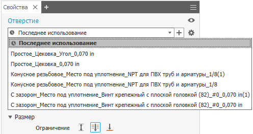 Используйте наборы параметров для быстрого размещения отверстий или панель «Свойства» для указания размеров, дна отверстия, вида ограничения и типа резьбы.