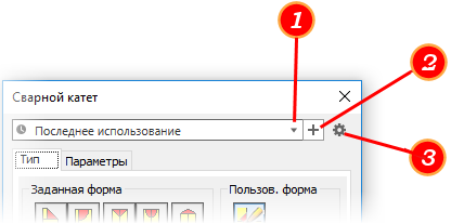 Набор параметров Последний использованный включает в себя параметры, которые использовались для последнего добавленного элемента соответствующего типа. Последний использованный набор отображается, если набор параметров для вновь созданных элементов не сохранялся. Набор параметров Последний использованный можно использовать без изменений или при необходимости изменить соответствующие значения. В любой момент для нового набора параметров можно сохранить измененный набор, если щелкнуть