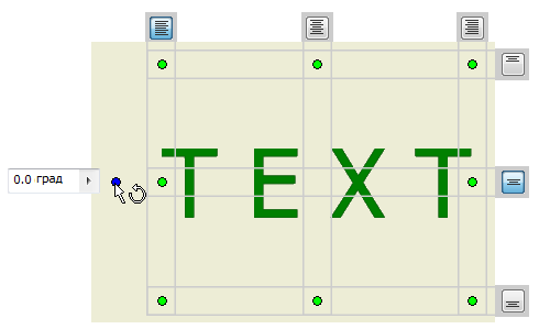 Поворот текста относительно точки вставки. Например, если текст выровнен по левому верхнему краю, он будет повернут относительно левого верхнего угла.