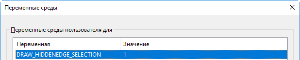 По умолчанию скрытые линии выбранного тела не отображаются. Чтобы отобразить такие линии, необходимо создать переменную среды DRAW_HIDDENEDGE_SELECTION и назначить ей значение, отличное от нуля.