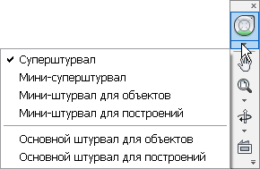 - На панели навигации нажмите стрелку раскрывающегося меню "Штурвалы" и выберите тип штурвала.