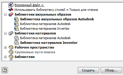 Библиотека материалов Inventor содержит базовый набор производственных материалов и представлений модели. Эта библиотека устанавливается только в Inventor.