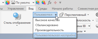 При открытии модели в режиме «Экспресс» или работе в этой среде набор параметров «Высокое качество» недоступен. Причиной является неполная загрузка компонентов и недоступность визуального стиля «Реалистичный».