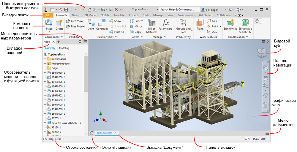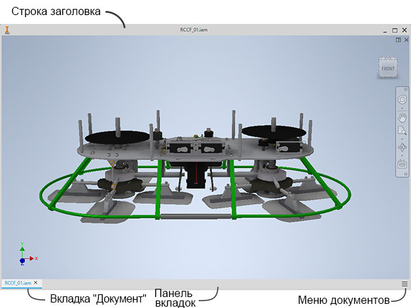 В этой теме приводится описание элементов и режимов работы окон, в которых содержатся файлы Inventor.