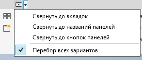 - Чтобы изменить отображение ленты, щелкните стрелку справа от панели вкладок и выберите параметр. Можно свернуть ленту до размеров вкладок или мозаики. Щелкая значок вместо стрелки, можно последовательно переключаться между параметрами ленты.