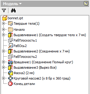 Маркер конца детали нельзя перемещать между поглощенными элементами (например, между элементом выдавливания и поглощенным эскизом) без предоставления к нему общего доступа.