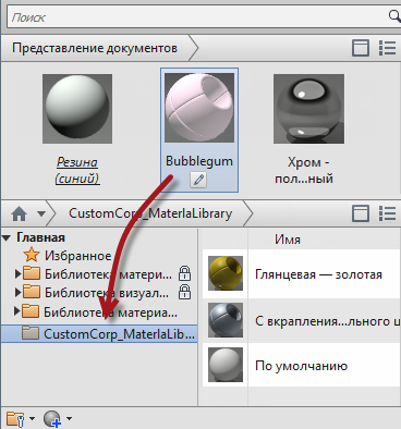 - Из раздела "Представления документов" перетащите все представления, которые требуется сохранить в пользовательской библиотеке. Можно перетащить их на узлы категории или библиотеки.