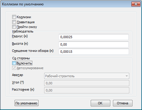 Чтобы установить принимаемые по умолчанию параметры коллизий