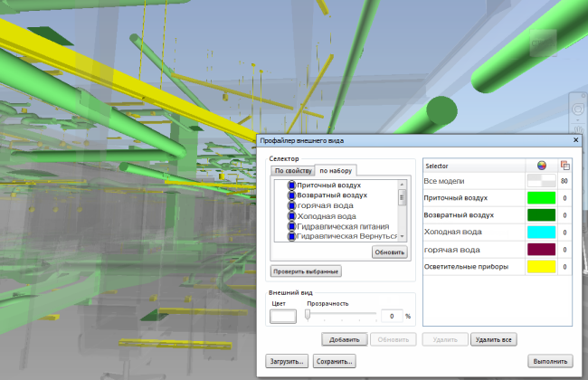 - Выберите в списке набор, который необходимо использовать, и нажмите кнопку Проверка выбранного. В виде сцены будут выбраны все объекты, отвечающие критериям.