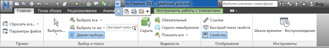 В верхней части окна приложения в панели быстрого доступа отображаются наиболее часто используемые команды.