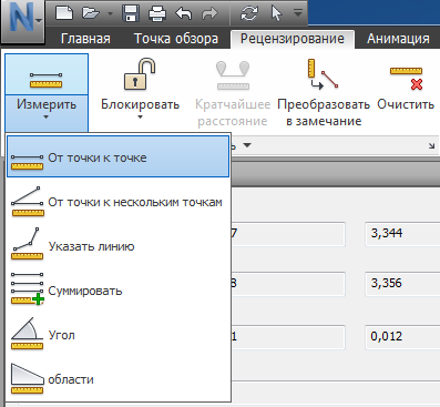 Средства измерения позволяют выполнять измерения между точками на элементах в модели. Все измерения выполняются в единицах отображения. Инструменты измерения доступны на вкладке Рецензирование панель