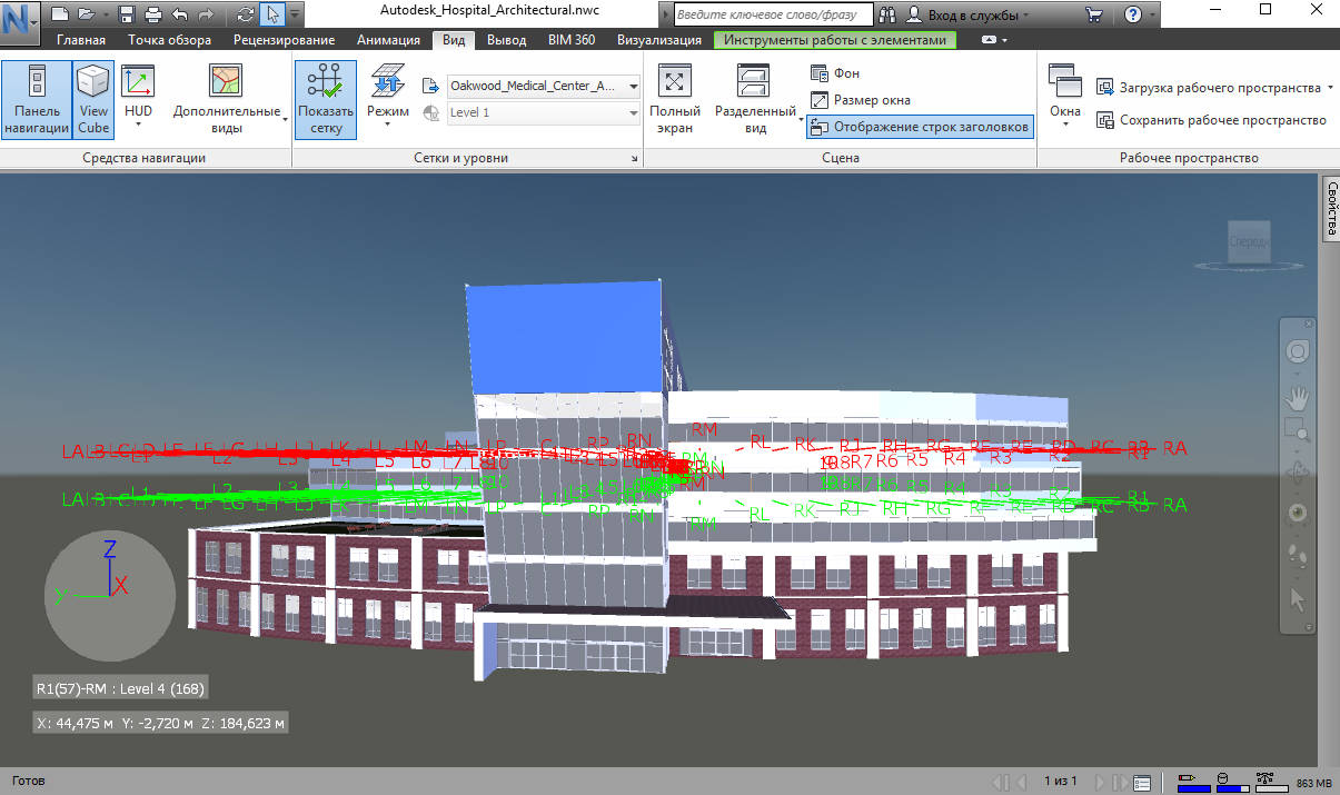 Системы сеток можно применять к моделям в Revit перед их импортом в Autodesk Navisworks.
