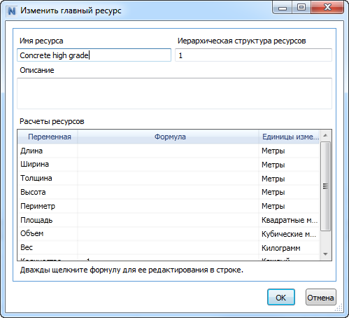 Основные ресурсы — исходные, базовые значения ресурсов для каталога проекта. В каталоге элементов можно вносить изменения в основные ресурсы. Все сделанные изменения применяются только к новым ресурсам.