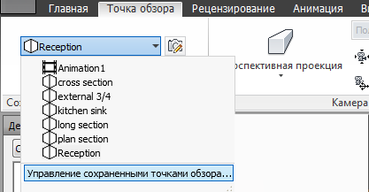 раскрывающийся список "Текущая точка обзора"