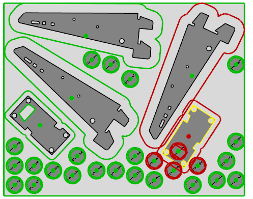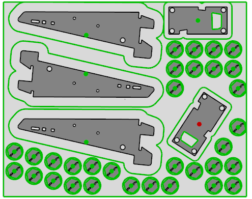 Совет: При изменении положения объекта вручную он фиксируется в новом положении, и любые последовательные операции раскроя не изменят его положения. Это отмечается красным кружком в центре объекта. Вы можете разблокировать деталь, переключив красный кружок на зеленый.