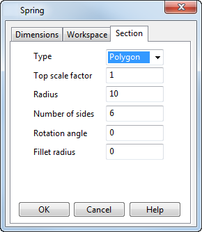 Если выбран тип спирали Многоугольник на странице Сечение диалога Спираль, появляются дополнительные опции: