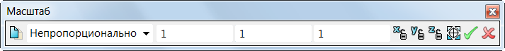 - Из выпадающего списка выберите Непропорционально. Панель инструментов обновляется, открывая поля масштабных коэффициентов по осям X, Y и Z: